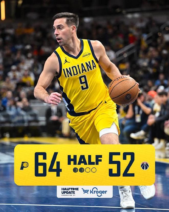 次节比赛,步行者连续两节得分30+,步行者前4分钟扩大46-36领先10分优势。奇才打出一波12-2攻势追平比分,步行者在西亚卡姆引领下一波9-0攻势再度拉开比分,步行者之后还逐步扩大两位数领先优势。步行者单节34-28净胜6分,上半场结束步行者扩大64-52领先奇才12分优势。前两节比赛,奇才三分17中5,萨尔9中4得到13分,步行者三分20中7,西亚卡姆12中8得到17+6与马瑟林10分。