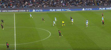 70’福登直塞,哈兰德单刀被弗莱肯破坏。