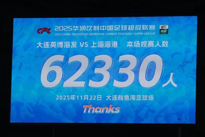 赛季初恐怕不会有人想到,2025赛季的中超联赛会如此火爆,上座率首次突破600万人次大关成为中超历史上的一个里程碑。联赛历史上13次现场观众6万+的比赛,本赛季独占12次,其中大连英博10次突破6万+,北京国安和上海申花各一次突破6万+。本赛季最高上座出现在赛季收官战,62330名球迷现场观看了大连英博海发对阵上海海港的比赛,这是中超历史上第二高的单场上座。横向对比,大连英博海发、北京国安、成都蓉城进入世界俱乐部上座前50名,分列第18名、第41名和第50名。