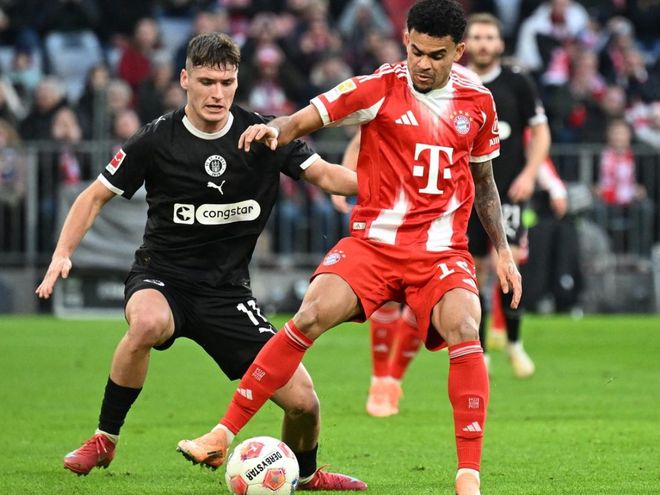 德甲第12轮的一场比赛展开争夺,拜仁在主场迎战圣保利。上半场,洪通吉进球首开纪录,卡尔和比朔夫的射门都中框,路易斯-迪亚斯助攻格雷罗进球扳平比分。下半场,哈里-凯恩射门被挡出,随后则击中立柱。补时阶段,路易斯-迪亚斯和尼古拉-雅克松接连破门。最终,拜仁3-1击败圣保利。路易斯-迪亚斯传射建功。而凯恩连场哑火。
